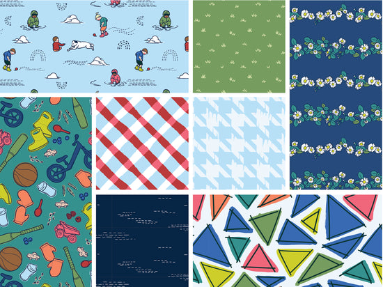 Close to Home celebrates the little adventures that come with young children. Ideal for children's products, including clothing, blankets and nursery decor.