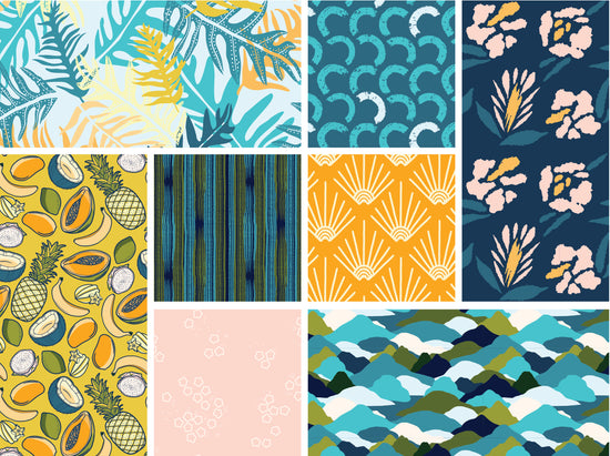 Tropical Lush is a celebration of all things warm and sunny. This collection would work especially well on outdoor fabrics, journals and party ware.