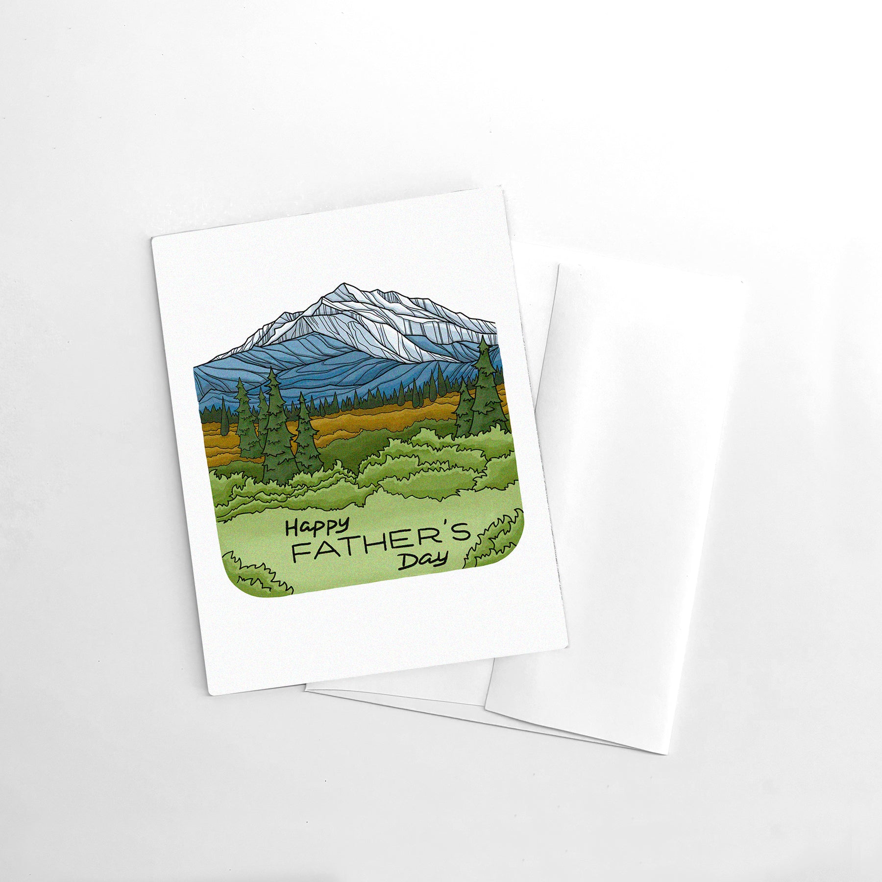 Tell your Dad - or father figure - Happy Father's Day with with a beautiful mountain greeting card with Denali mountain.