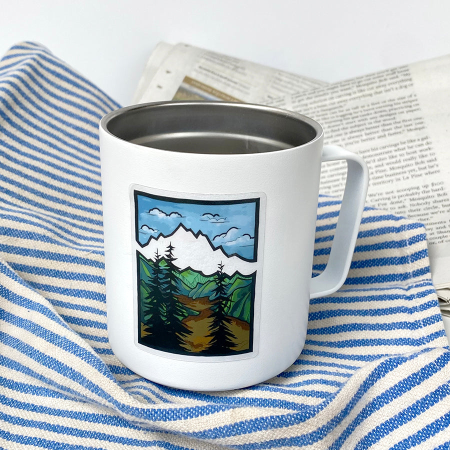 Art is printed on vinyl stickers with a permanent adhesive and a protective laminate coating, making them weather resistant and dishwasher safe, as well as fade resistant for 3 – 5 years.