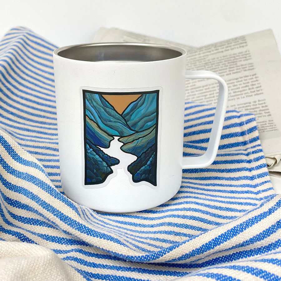 Art is printed on vinyl stickers with a permanent adhesive and a protective laminate coating, making them weather resistant and dishwasher safe, as well as fade resistant for 3 – 5 years.