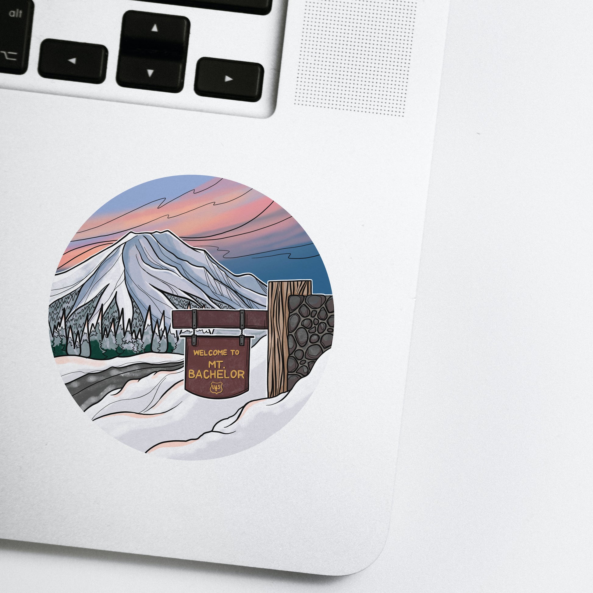 As the sunrise begins, skiers headed for the ski resort Mount Bachelor see this iconic sign. This is classic winter in Bend, Oregon