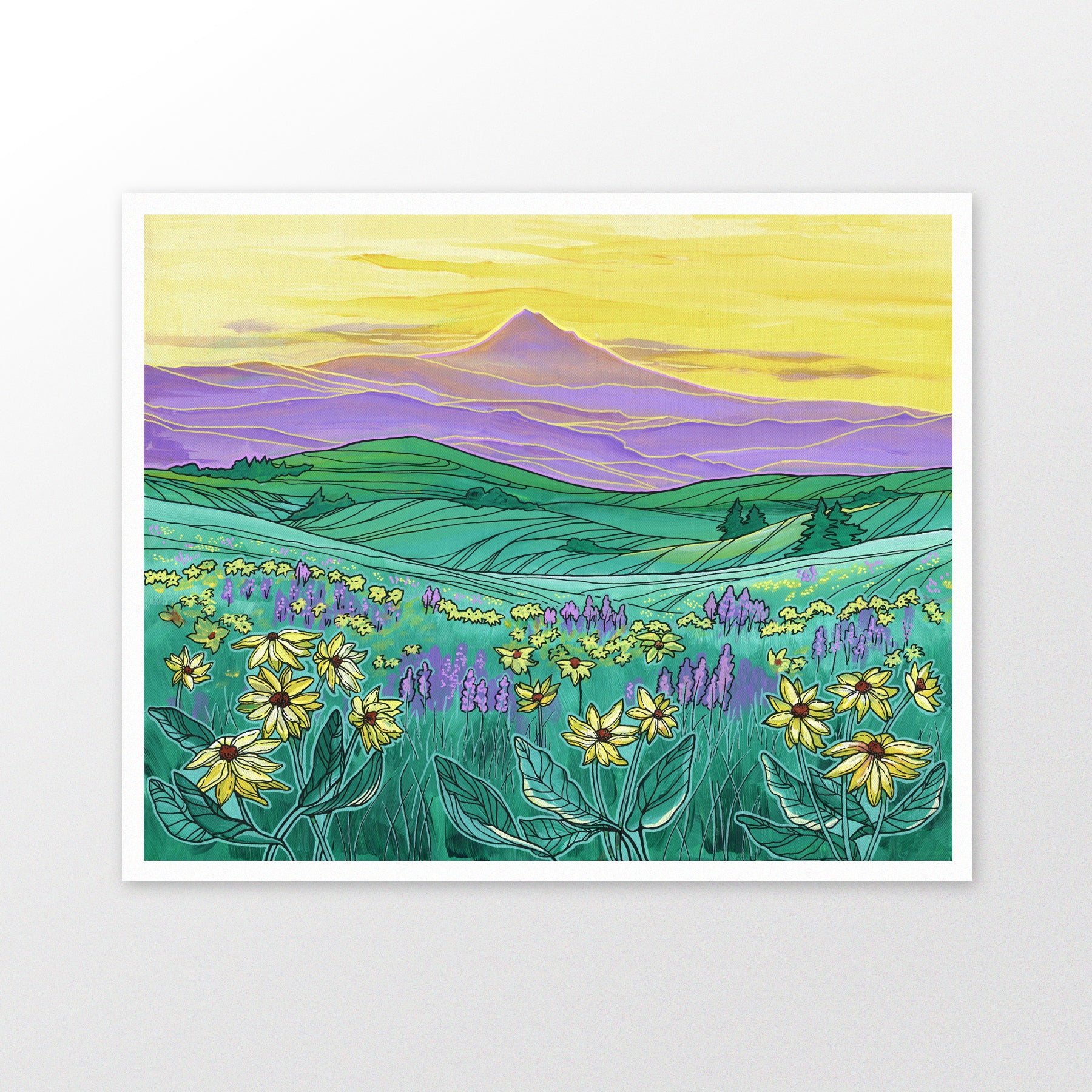 In the springtime, Mount Hood and its hillsides are covered in wildflowers, including arrowleaf balsamroot and lupine.