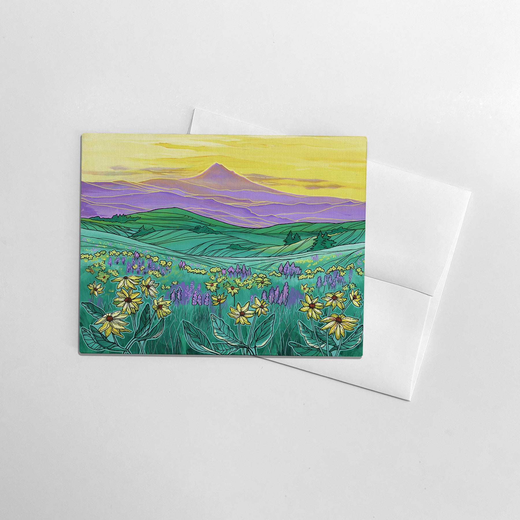 4.25 x 5.5 inch greeting card. Blank inside, white envelope included.
