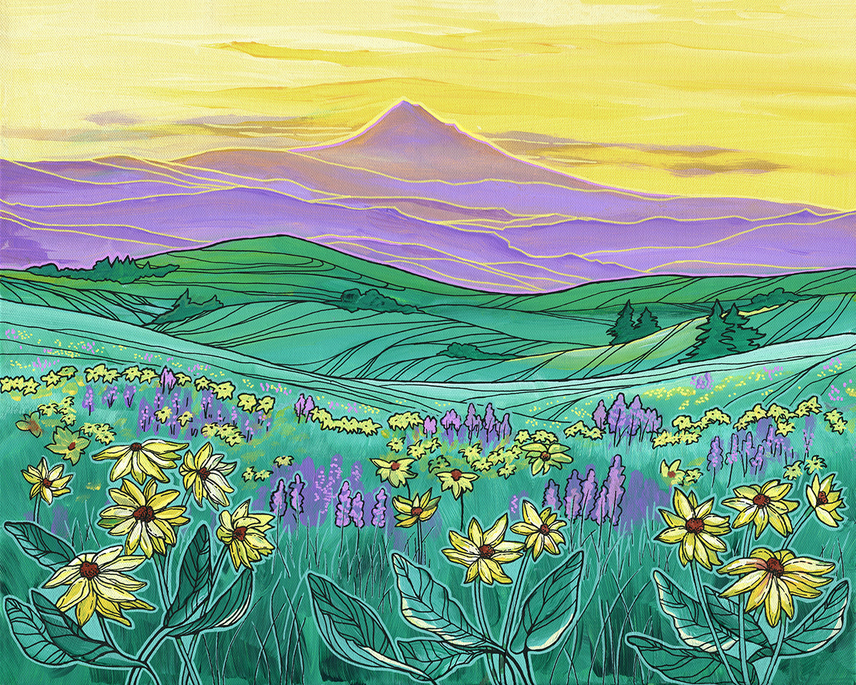 In the springtime, Mount Hood and its hillsides are covered in wildflowers, including arrowleaf balsamroot and lupine.