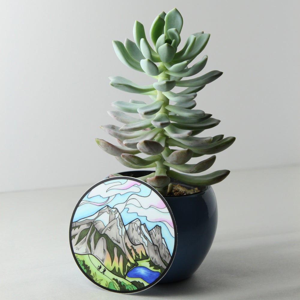 Art is printed on vinyl stickers with a permanent adhesive and a protective laminate coating, making them weather resistant and dishwasher safe, as well as fade resistant for 3 – 5 years.